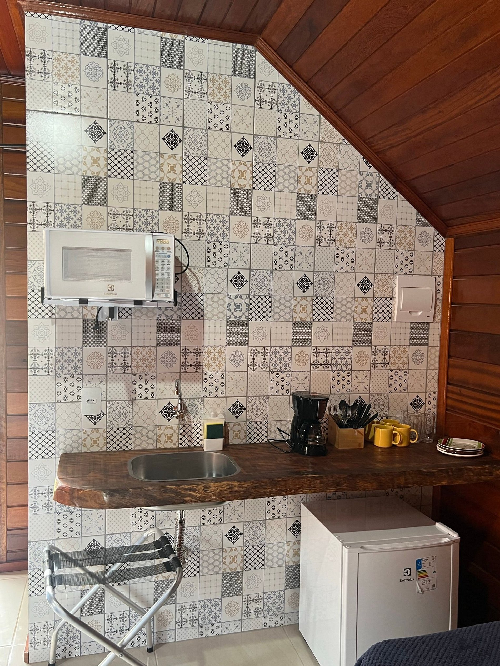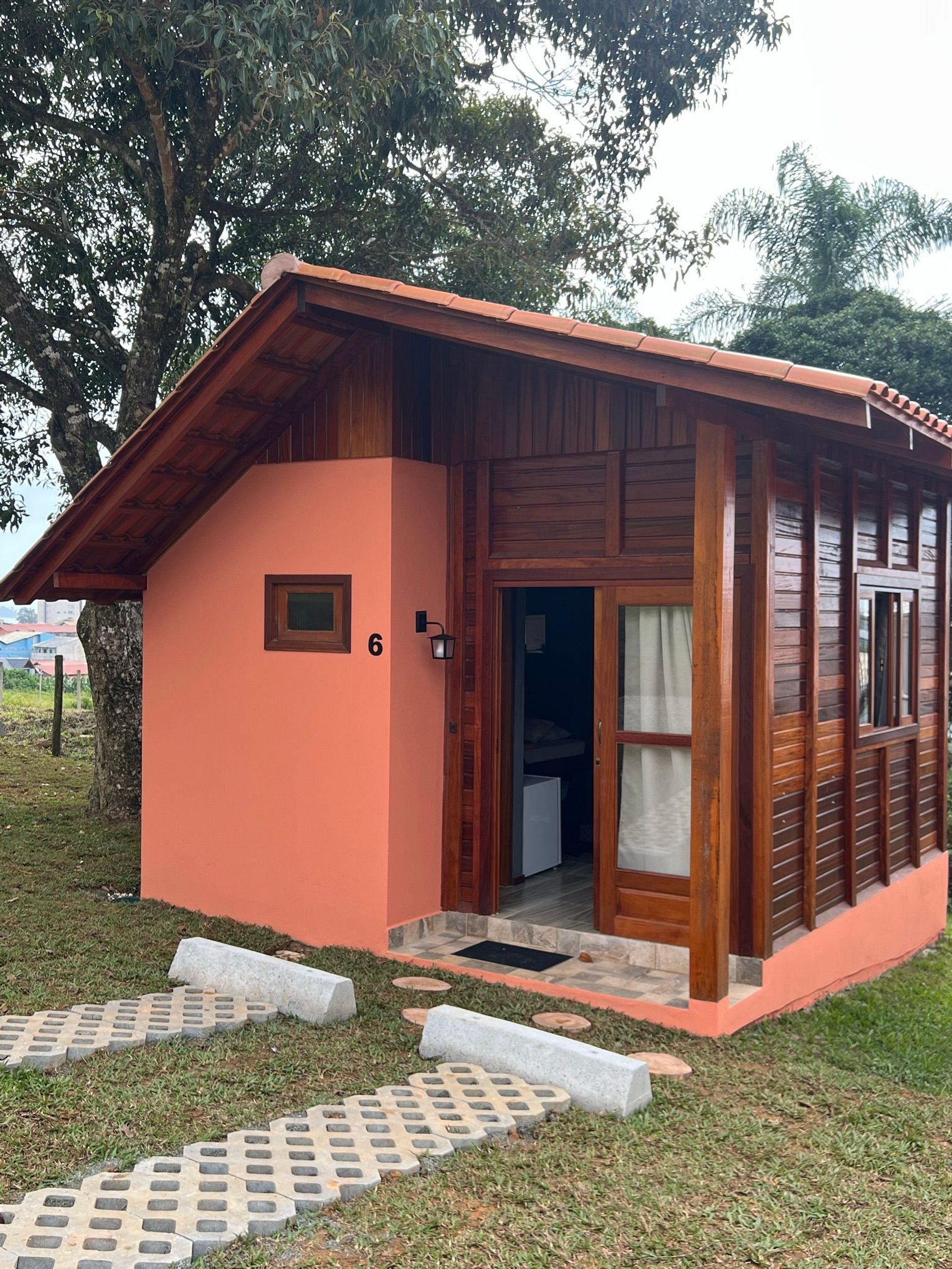 Os hóspedes encontrarão um chalé compacto e aconchegante, um quarto e banheiro. São equipados com microondas, frigobar e cafeteira. Este chalé dispõe de uma cama de casal e duas de solteiro, ar-condicionado e TV.